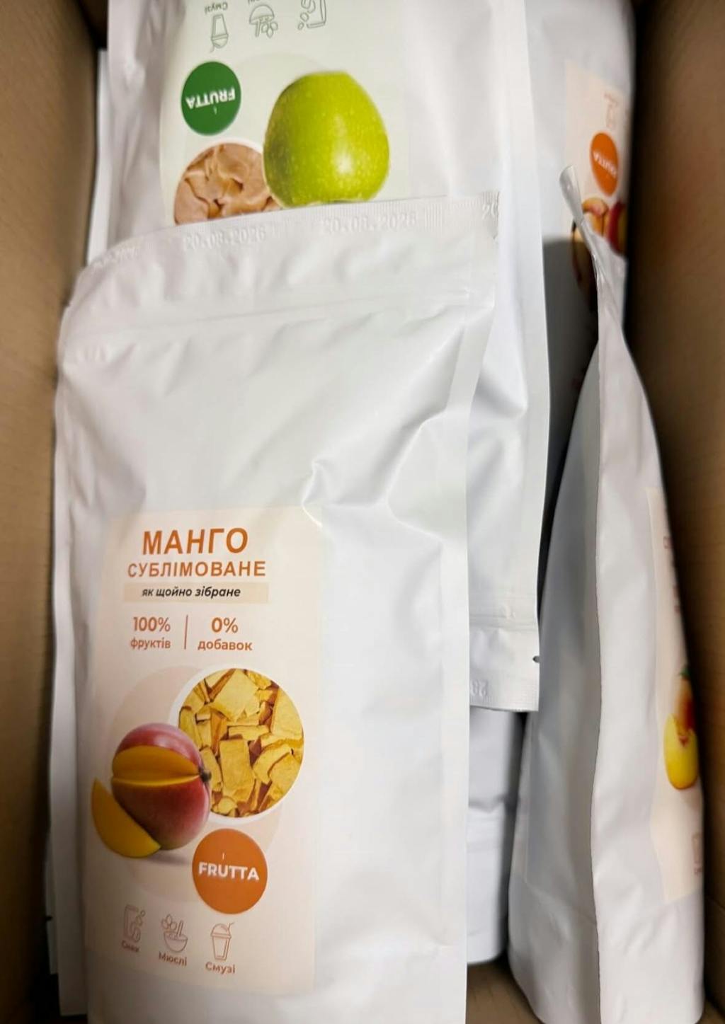 Сублімовані фрукти запаковують в вакуумну упаковку, щоб забезпечити свіжість до відкриття.