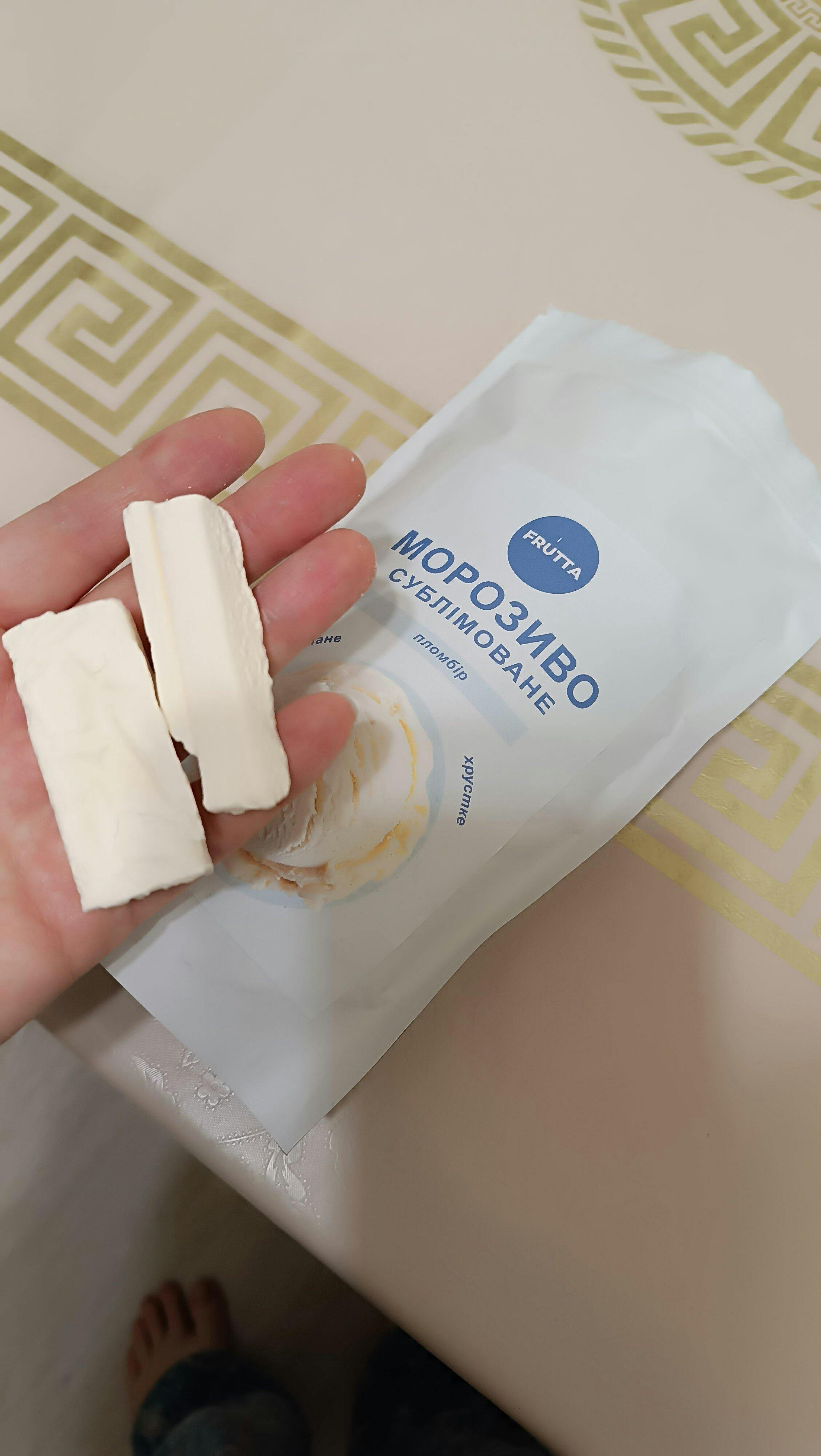 Вже давно хотіла спробувати сублімоване морозиво, тому взяла пломбір, щоб почати з нейтрального смаку. Виглядає як крейда, на смак як пломбір 19 (тобто добре відчувається молочний смак морозива). Дякую магазину за швидку доставку