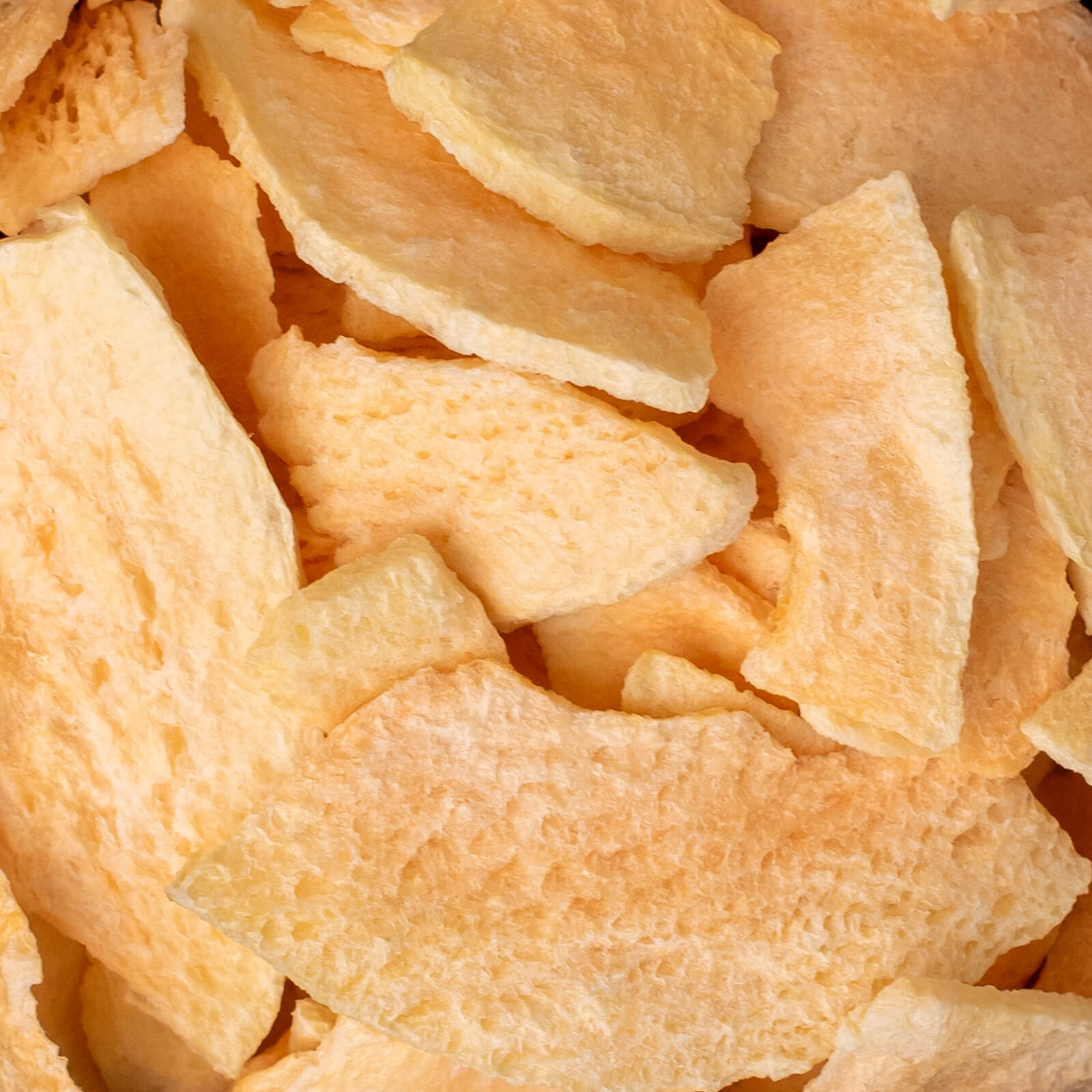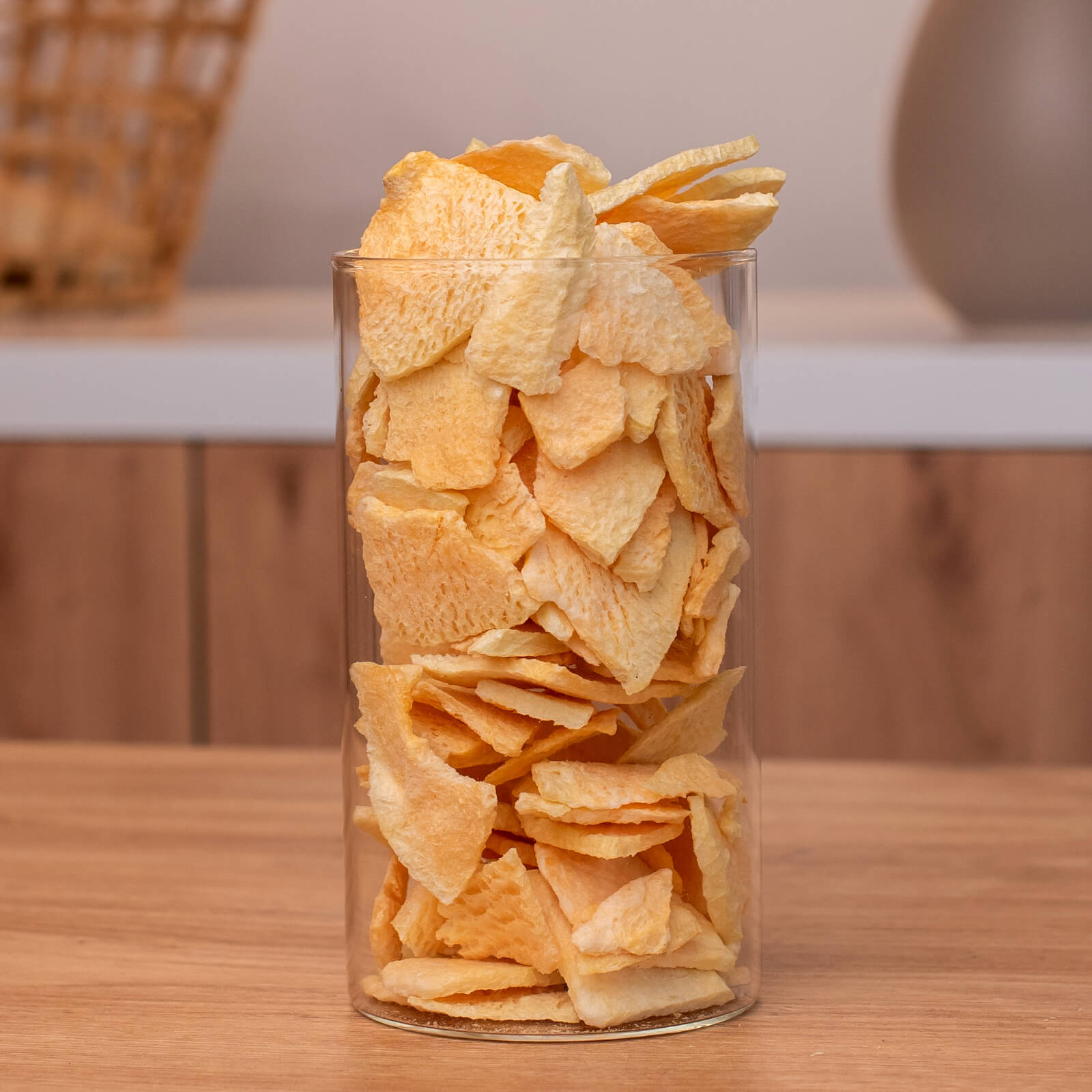 Хрусткі слайси зручно використовувати як готовий перекус або інгредієнт для сніданків і десертів — вони добре поєднуються з йогуртами, мюслі, кашами та випічкою. Це легкий фруктовий снек для тих, хто цінує натуральний склад і яскравий смак без компромісів.