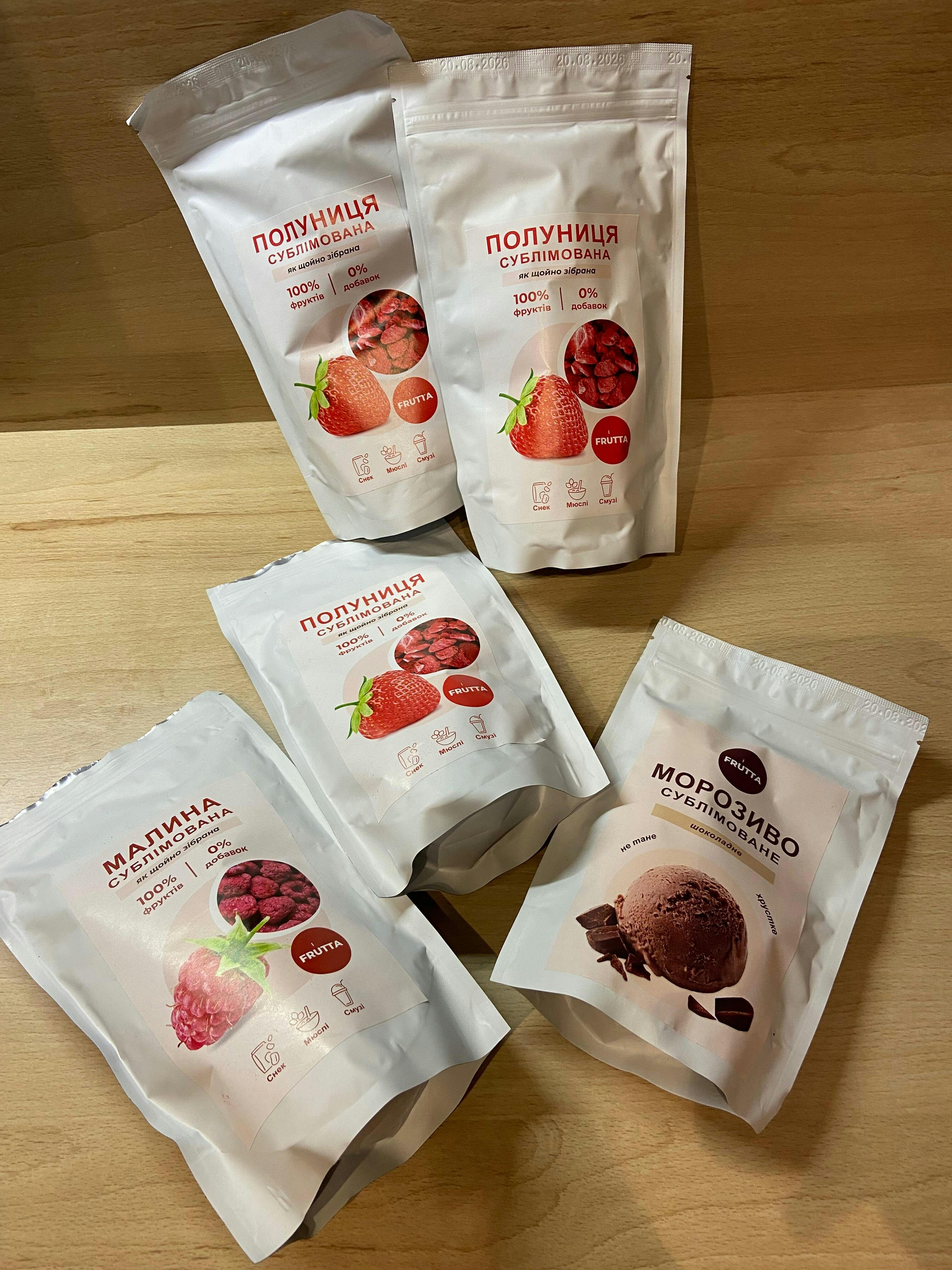 Сублімовані фрукти запаковують в вакуумну упаковку, щоб забезпечити свіжість до відкриття.